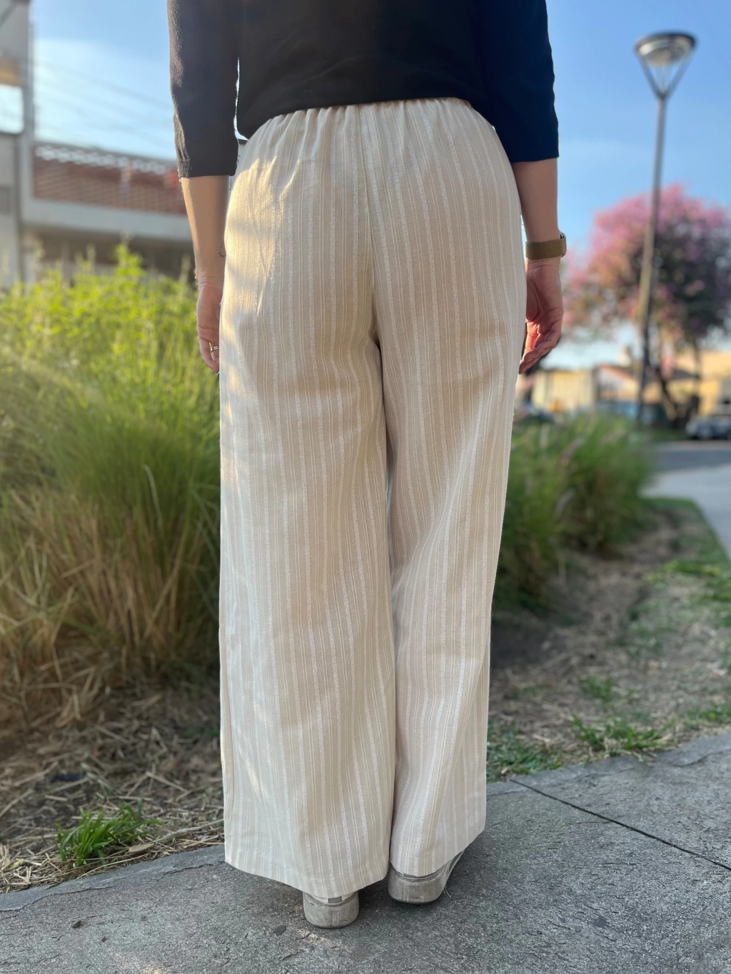 Palazo realizado en lino rústico con elástico en la cintura, es rígido.
