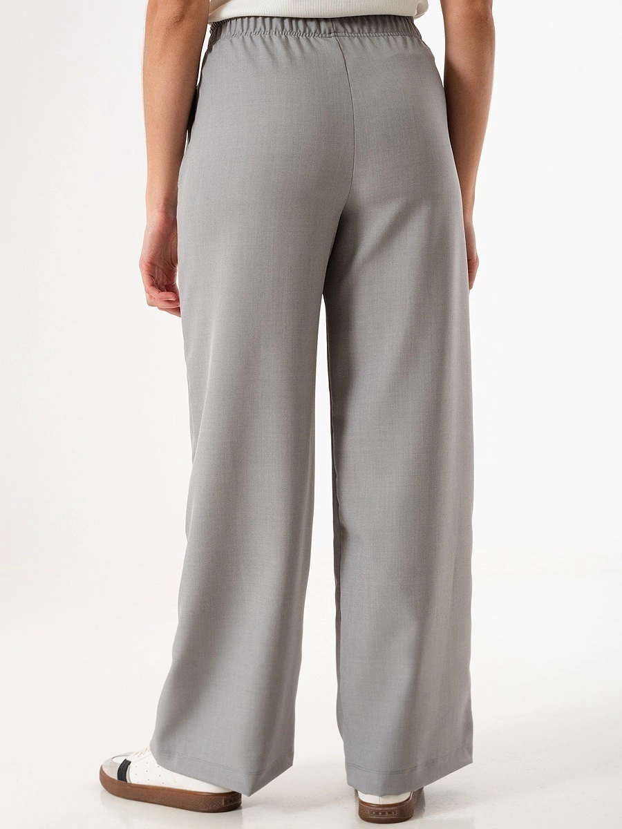 Realizado tela sastrera semi rígido de tiro alto (tiene un leve estiramiento pero solo para acompañar el calce). Elástico grueso en toda la cintura. El cordon es solo de vista.