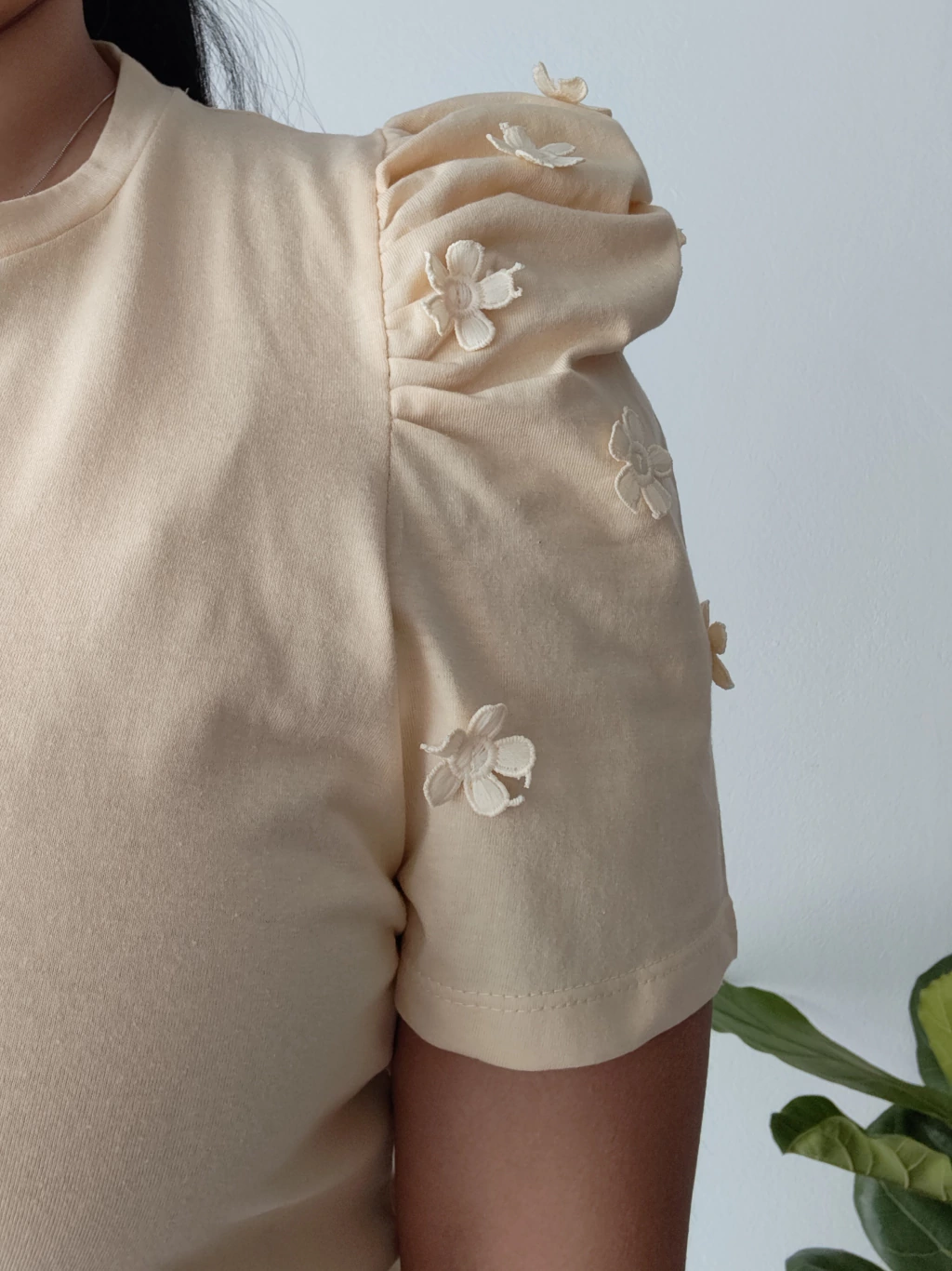 Realizada en algodón premium con manga princesa. Detalle de florcitas en relieve con cuello reforzado.