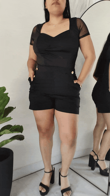 Short de bengalina elastizada con bolsillos funcionales al frente. Botones símil metal.